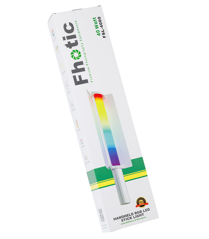 The FSL-4000 RGB Stick Light 40W is a versatile handheld lighting solution built for photographers and video creators who need portable yet powerful lighting. With a wide 2500K–9900K color temperature range, high CRI 95+ accuracy, and full RGB capability, this stick light delivers consistent, true-to-life colors across different shooting environments. Its built-in battery, compact design, and included modifiers like barn doors and honeycomb grid make it a reliable tool for both studio and on-location shoots.