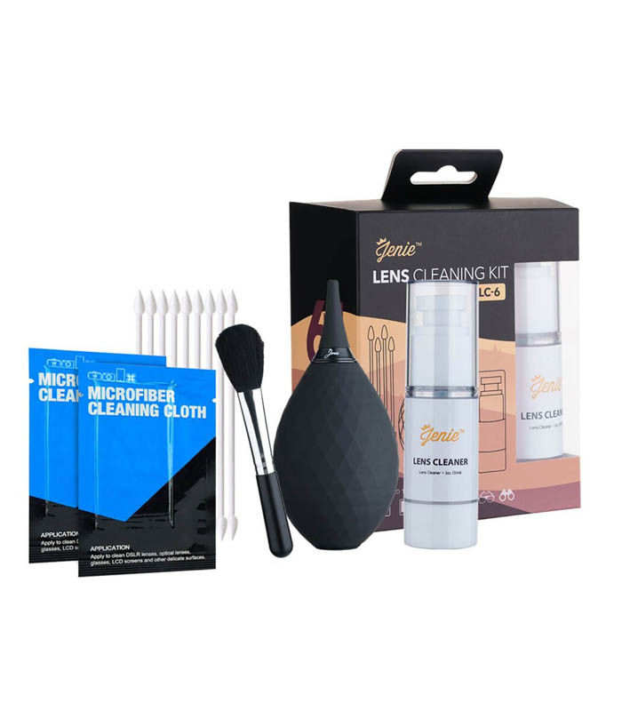 The Jenie 6-in-1 Lens Cleaning Kit LC-6 is a compact and complete cleaning solution designed to keep your camera lenses, filters, and optical gear spotless and well-maintained. This kit combines essential tools into one convenient pack, helping you remove dust, smudges, and debris safely without scratching delicate glass surfaces — ideal for photographers who shoot outdoors or in dusty environments