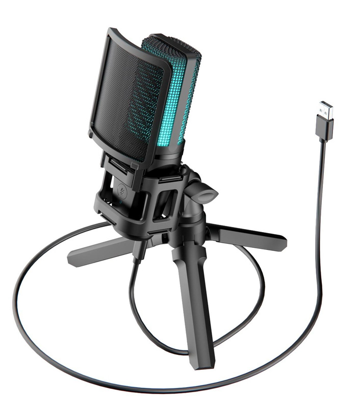 Dynamic RGB lighting adds a visual flair that syncs with your voice or stays static, giving your setup a polished, modern look.